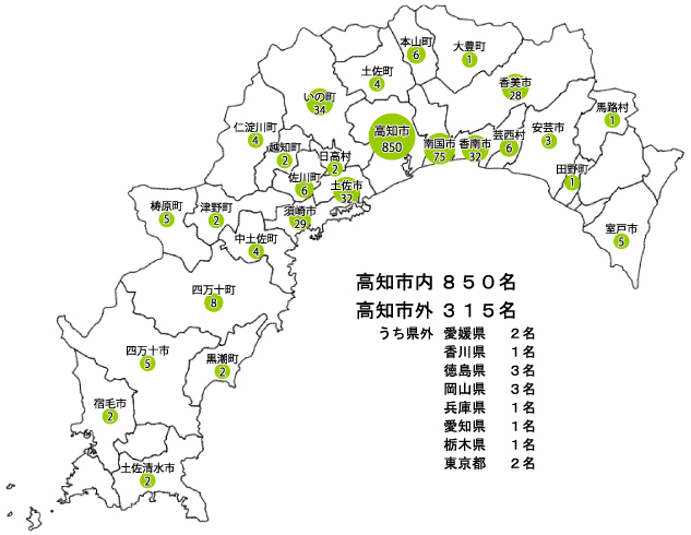 | 計 | 14 | 145 | 166 | 275 | 295 | 126 | 61 | 55 | 28 | 1165 |