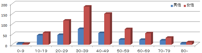 | 男性 | 6 | 46 | 48 | 77 | 57 | 25 | 24 | 21 | 7 | 311 |
